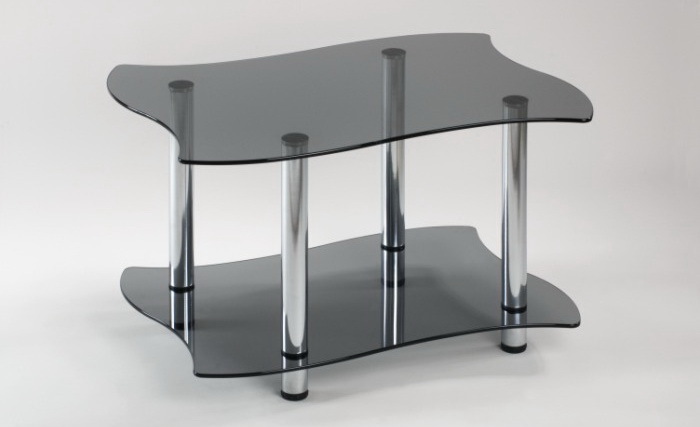Стол журнальный из закаленного стекла 8 мм столешница, 6 мм полка с металлическими ножками.