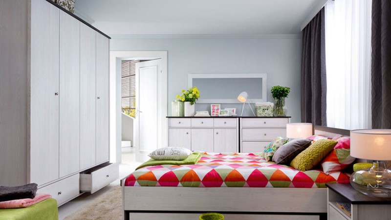 Комплект мебели для спальни Порто представляет собой идеальное сочетание функциональности, простых форм и оригинальной окраски. Небольшие круглые металлические ручки серебристого цвета декоративно дополняют дизайн мебели и обеспечивают комфортное открытие. Используются петли Hettich и роликовые направляющие. Кровать комплектуется ортопедическими ламелями. Матрац приобретается отдельно.