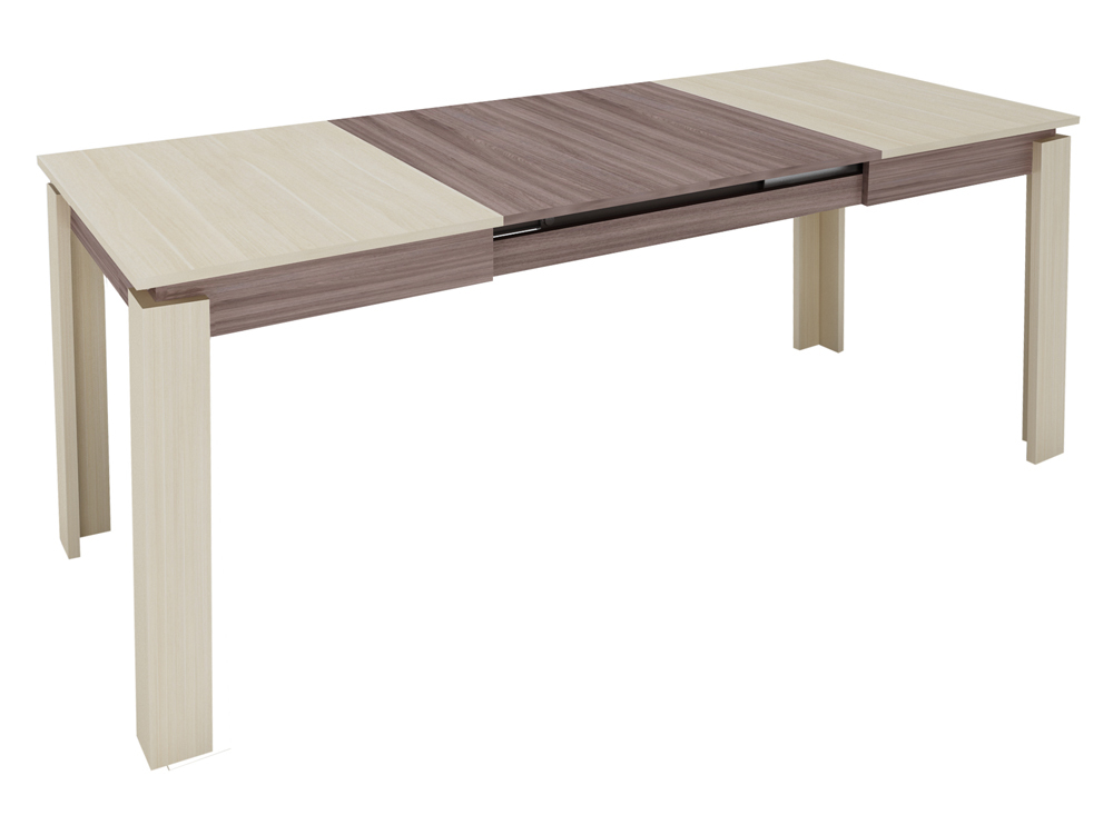 «Орфей 16.1» – это обеденный стол, выполненный в оригинальном цветовом решении – контрастном сочетании двух оттенков ЛДСП. Благодаря механизму синхронного раздвижения столешницы и наличию двух вставок, стол увеличивается в длину на 40 и на 80 см.