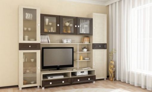 Вариация стенки Патриция №11 относится к универсальной мебели, заменив пару сегментов ее можно установить и в гостиной, и в детской, и даже на кухне. Универсальность мебели состоит в ее способности гармонично вписываться в любой интерьер и метраж, совмещать практичность и эстетическую привлекательность и, главное, быть стилистическим хамелеоном, а не безликой массой. Практически любая композиция фабрики Лером обладает этими качествами, Патриция №11 не исключение. Простой набор из шкафов ШК-521 и ШК-520, длинной тумбы ТБ-504 и тройная антресоль АН-501 в сочетании с полками ПЛ-307 и ПЛ-302 создали свой неповторимый образ.